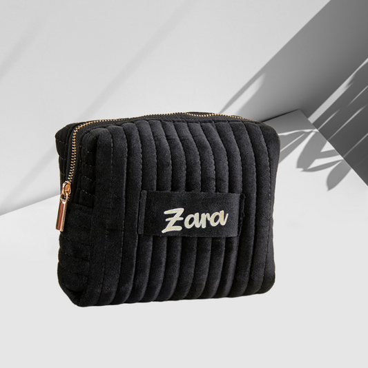 Personalized Name Black Velvet Makeup Bag – Custom Cosmetic Pouch Birthday & Valentine’s Day Gift