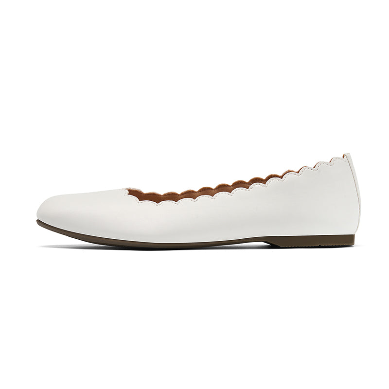 Omine Classic Round Toe Ballet Flats Wave Pattern Edge Super Low Heel Flat Solid Color Full Size Comfort Party Dress Casual Shoes